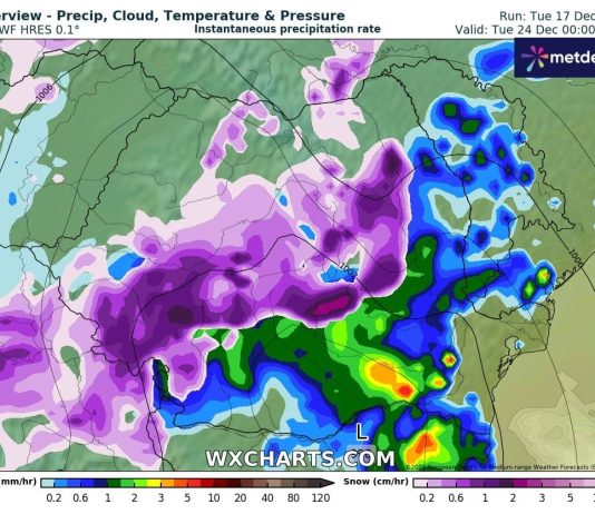Vremea se va răci începând cu data de 20 decembrie, anunță pagina de meteorologie Alerte Meteo și Prognoze - Vremea în România. Pe fondul acestui vortex polar, specialiștii anunță precipitații în mai multe zone ale țării, cu posibile ninsori marți, 24 decembrie, chiar în ajunul Crăciunului.