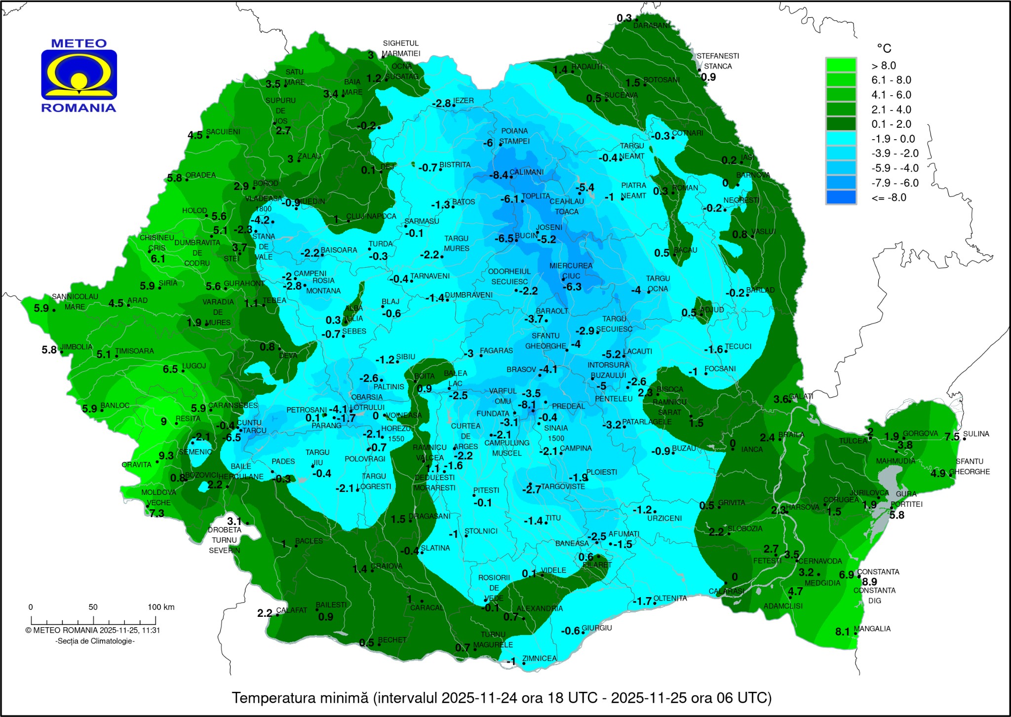 Vreme rece, în dimineața zile de marți, în Gorj. Potrivit Administrației Naționale de Meteorologie, la ora 6:00, la Târgu Logrești s-au înregistrat – 2,1 grade Celsius. La aceeași oră, la Padeș 0 grade Celsius, la Târgu Jiu 0,4, iar la Polovragi 0,7 grade Celsius.