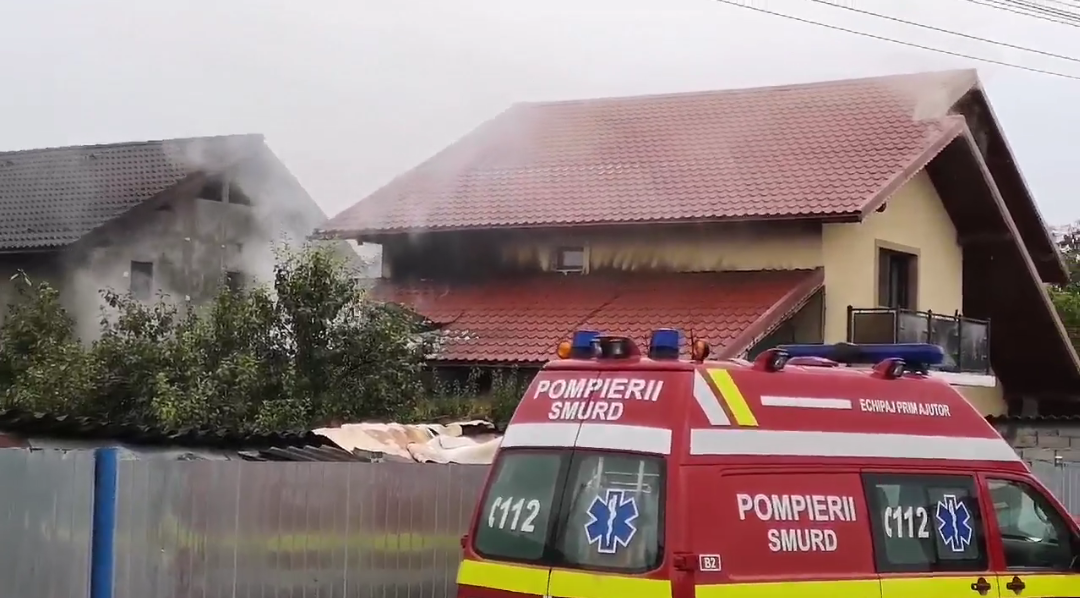 Foto! Târgu Jiu: Explozie urmată de incendiu la o casă de lângă mall