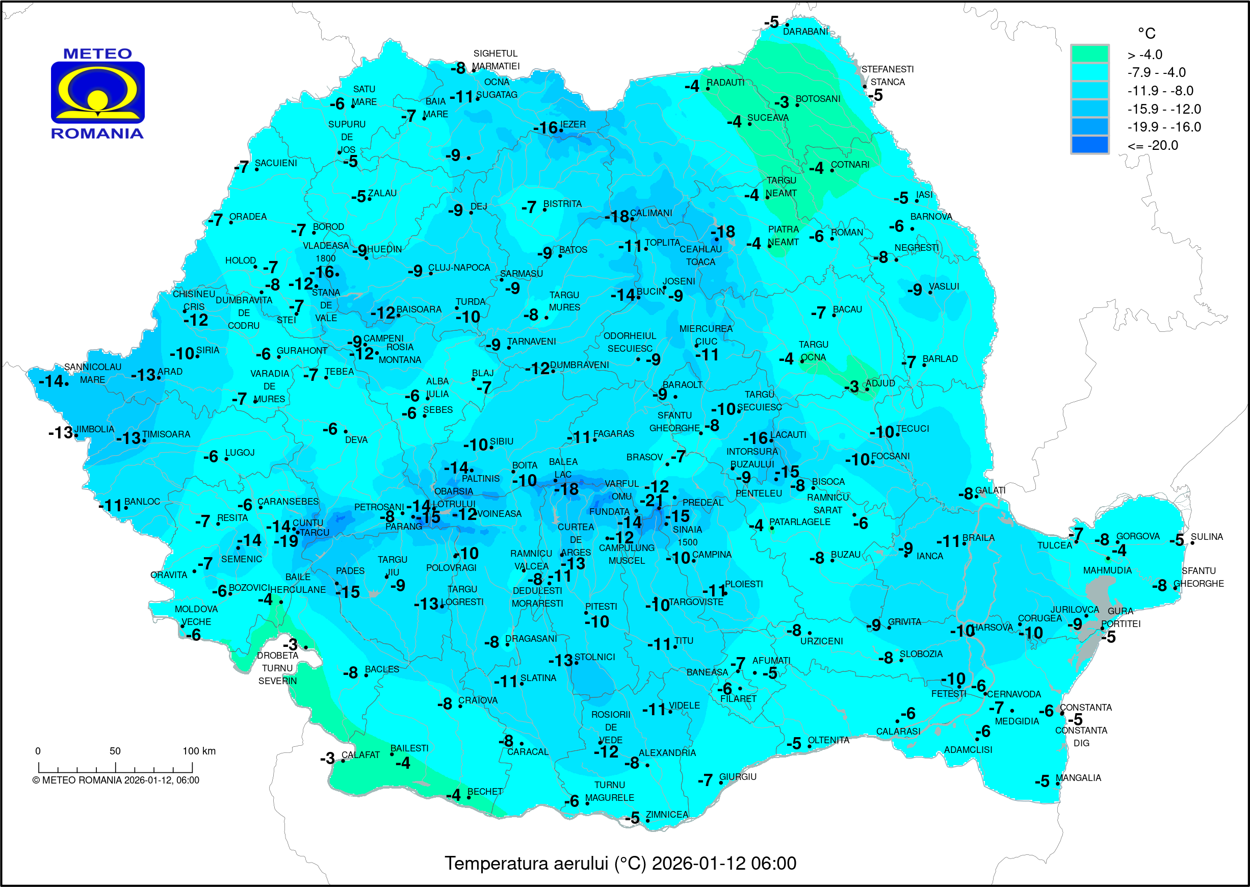 Temperatura a scăzut dincolo de pragul de ger (minus zece grade Celsius), în noaptea de duminică spre luni, în Gorj. Astfel, potrivit datelor prezentate de Administrația Națională, luni, la ora șase, la Pedeș s-au înregistrat – 15 grade Celsius, la Târgu Logrești – 13, la Polovragi – 10, iar la Târgu Jiu – 9.
