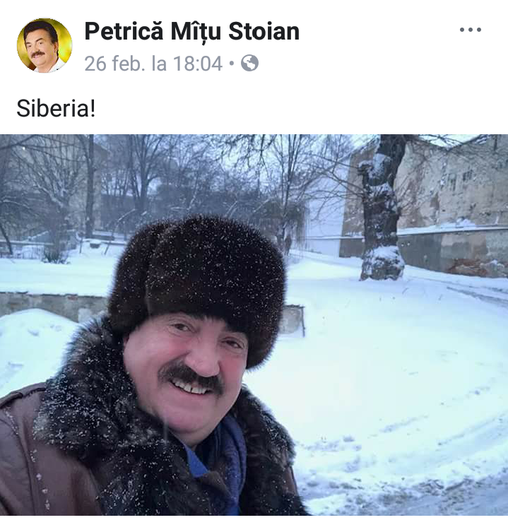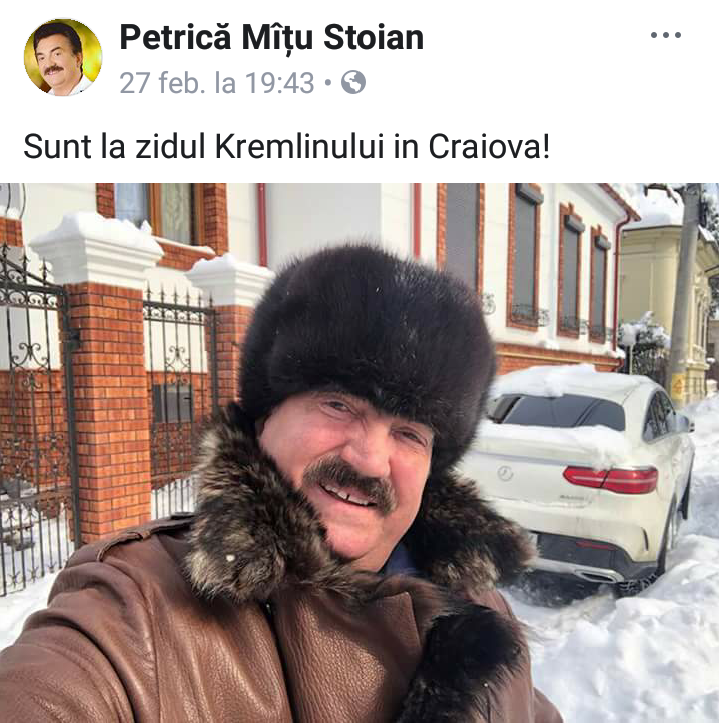 Artistul din Isverna Mehedințului a făcut vâlvă pe internet după ce a postat câteva fotografii în care poartă o căciulă menită să îl protejeze de ”Siberia”, așa cum a catalogat valul de frig care a cuprins România. ”Am cumpărat-o de la Moscova”, i-a lămurit Mâțu Stoian pe prietenii curioși. Interpretul și-a căutat și o altfel de protecție de la Moscova, pe lângă căciulă mai are și un câine tot de acolo. ”Este cel mai bun câine și cel mai frumos”, susține rapsodul care pare a avea o afinitate pentru Rusia. Până și gardul proprietății din Craiova este ”Zidul Kremlinului”, în viziunea popularului mehedințean.