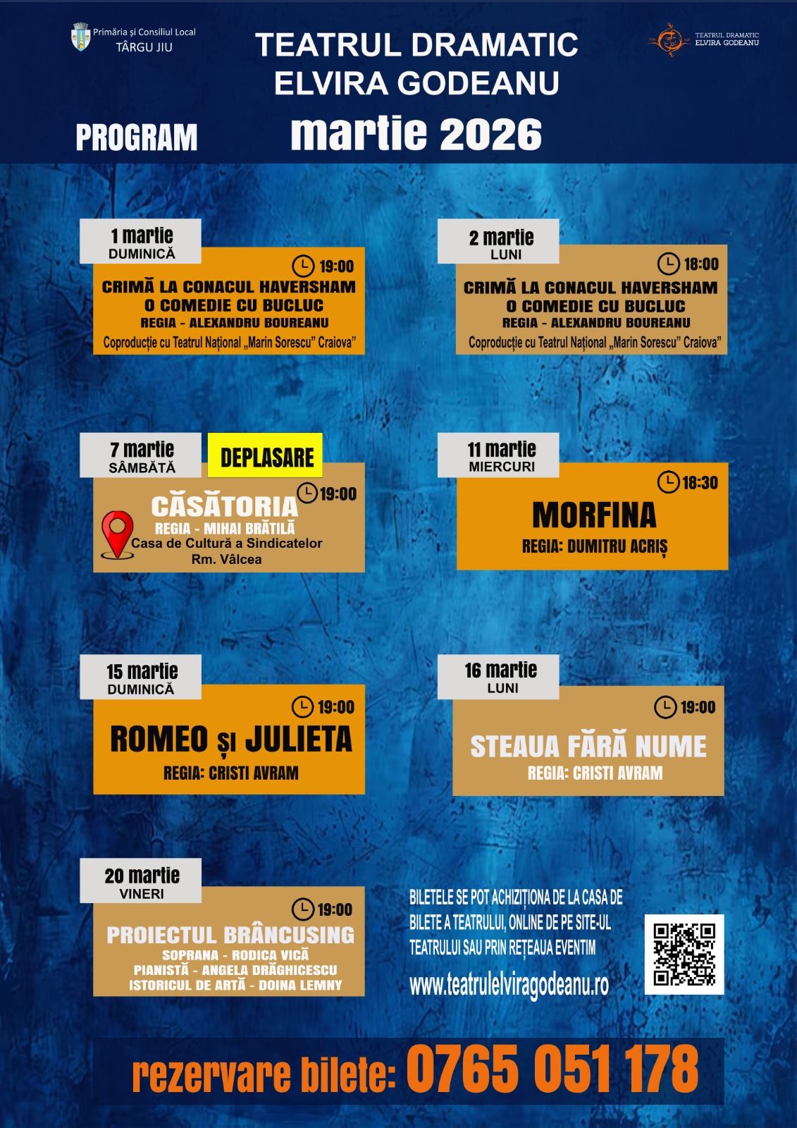 Teatrul Dramatic „Elvira Godeanu” a prezentat programul spectacolelor din luna martie 2026.
